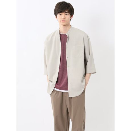 リネンライク バンドカラー 7分袖シャツ