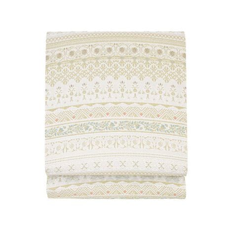 金色や銀色に輝く糸で美しい文様が織り込まれた華やかなデザインです。