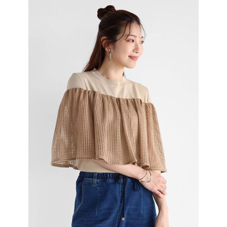 メッシュのフリルデザインがフェミニンな雰囲気に。