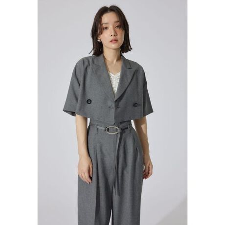 【どんなアイテムにも合わせやすいダブルショートジャケット】■ポイントバスト、肩幅共に大きくカジュアル感の強いデザインに仕上げています。肘も隠れるので気軽に羽織れて着回しに便利なアイテムです。■ディテール気になる二の腕をカバーする袖丈とスタイルアップ効果抜群なクロップ丈、小顔効果ある大きめの襟といった計算しつくされた1着になっています。■スタイリングリネンライクワイドタックベルト付きJ/WPT(110ISA31-3151)とセットアップでの着用がおすすめです。■生地透け感:なし裏 地:なし伸縮性:なし光沢感:なし厚 さ:薄手■商品のお気に入り登録お気に入りアイテムの再入荷・在庫1点などの通知を受け取ることができます。[注意事項]※画像の商品はサンプルです。実際の商品と仕様、加工が若干異なる場合があります。※画像の商品は光の照射や角度、お使いのモニター環境により、実物と色味が異なる場合がございます。※着用、お取り扱いの際は、アテンションタグをご確認ください。