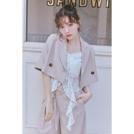 【どんなアイテムにも合わせやすいダブルショートジャケット】■ポイントバスト、肩幅共に大きくカジュアル感の強いデザインに仕上げています。肘も隠れるので気軽に羽織れて着回しに便利なアイテムです。■ディテール気になる二の腕をカバーする袖丈とスタイルアップ効果抜群なクロップ丈、小顔効果ある大きめの襟といった計算しつくされた1着になっています。■スタイリングリネンライクワイドタックベルト付きJ/WPT(110ISA31-3151)とセットアップでの着用がおすすめです。■生地透け感:なし裏 地:なし伸縮性:なし光沢感:なし厚 さ:薄手■商品のお気に入り登録お気に入りアイテムの再入荷・在庫1点などの通知を受け取ることができます。[注意事項]※画像の商品はサンプルです。実際の商品と仕様、加工が若干異なる場合があります。※画像の商品は光の照射や角度、お使いのモニター環境により、実物と色味が異なる場合がございます。※着用、お取り扱いの際は、アテンションタグをご確認ください。
