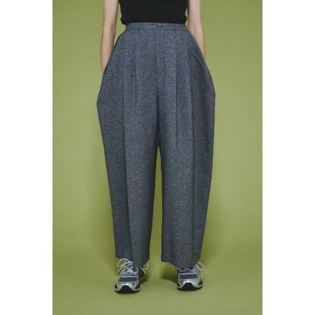 同素材のベスト(530IST30-0791 V neck vest)とセットアップで着こなしたいアイテムオーバーサイズのパンツはダボっと感がメンズライクでかわいい。麻のスラブ感とネップ感を表現し、涼しげな表情感の麻調ポリエステル素材になります。メニータックパンツ[注意事項] ※画像の商品はサンプルです。実際の商品と仕様、加工が若干異なる場合があります。 ※画像の商品は光の照射や角度、お使いのモニター環境により、実物と色味が異なる場合がございます。 ※着用、お取り扱いの際は、アテンションタグをご確認ください。