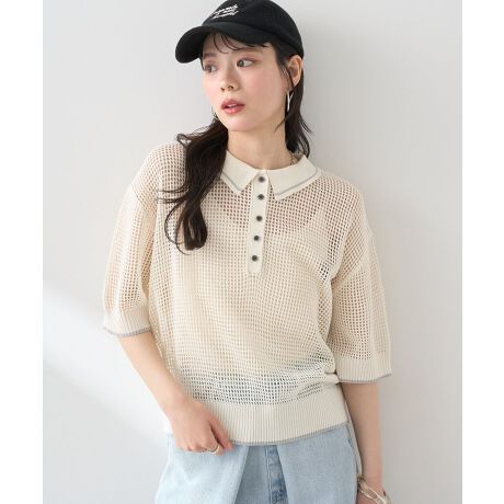 トレンドのメッシュ素材を使用したポロニットプルオーバー。落ち感のある程よくルーズなサイズ感でカジュアルに着こなしていただけます。さりげない肌見せでヘルシーなレイヤードスタイルが楽しめ、様々なボトムと好相性。優しいニュアンスカラーに加え、ラメ配色をプラスしたモノトーンカラーなど豊富なバリエーションにも注目です。