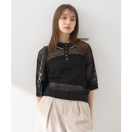 トレンドのメッシュ素材を使用したポロニットプルオーバー。落ち感のある程よくルーズなサイズ感でカジュアルに着こなしていただけます。さりげない肌見せでヘルシーなレイヤードスタイルが楽しめ、様々なボトムと好相性。優しいニュアンスカラーに加え、ラメ配色をプラスしたモノトーンカラーなど豊富なバリエーションにも注目です。