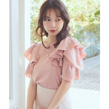 伸縮性に優れたリブ素材で仕立てたデザインプルオーバー。シフォンを重ねたフリルスリーブからちらりと肩がのぞき、一枚着るだけで華やかな着こなしが完成します。程よくボディフィットするサイズ感で、様々なボトムと好相性。デイリーにはもちろん、ちょっとしたお出かけシーンまで幅広く活躍するおすすめのアイテムです。透け感[ややあり]
