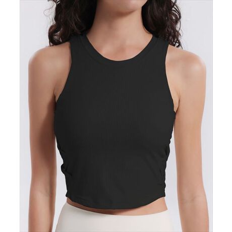 ファッショナブルなデザインで、フィットネスやヨガで着たくなるノースリーブのクロップド丈トップス。