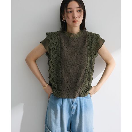 繊細なレース素材で仕立てた女性らしいブラウス。程よく肩が隠れるフレンチスリーブが涼しげで上品な印象を演出します。裏地にはひんやりとした肌触りの良い接触冷感素材を使用。スラックスできれいめスタイルに、デニムを合わせたカジュアルMIXスタイルもおすすめです。透け感[なし]