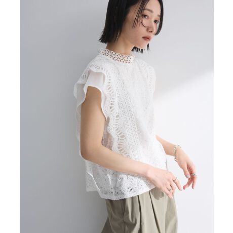 繊細なレース素材で仕立てた女性らしいブラウス。程よく肩が隠れるフレンチスリーブが涼しげで上品な印象を演出します。裏地にはひんやりとした肌触りの良い接触冷感素材を使用。スラックスできれいめスタイルに、デニムを合わせたカジュアルMIXスタイルもおすすめです。透け感[なし]