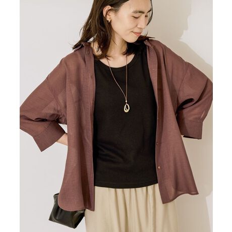 シアーシャツ 七分袖 薄手 透け感 レイヤード 体型カバー 春夏トップス トップス シャツ・ブラウス 30代 40代 レディース カジュアル 春夏 25SS AMERICAN HOLIC AMERICAN HOLIC アメリカンホリック アメホリ