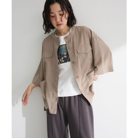 ポケットデザインがミリタリー感漂うシャツジャケット。1枚さらっと羽織るだけで程よくカジュアルな雰囲気をプラスしてくれます。爽やかなシャツ素材にバンドカラーが暑い季節もすっきりと快適な着心地をサポート。合わせるアイテム次第でカジュアルから甘めスタイルまで楽しめる、今季おすすめのアイテムです。透け感[なし]