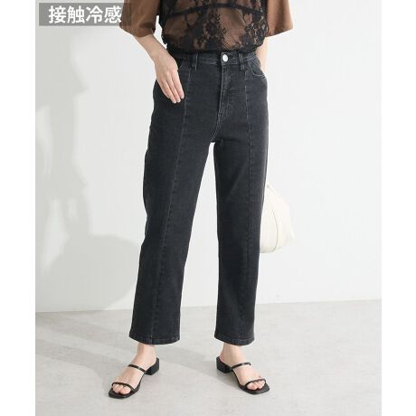 接触冷感性のある素材で仕立てたスキニーパンツ。程よくフィットしつつもストレッチ性があり、快適な穿き心地が魅力的です。センターラインがスレンダーな美しいレッグラインを演出。バックウエストはゴム仕様で楽に着脱できます。どんなトップスとも相性が良く、ロングシーズン活躍するおすすめのアイテムです。透け感[なし]