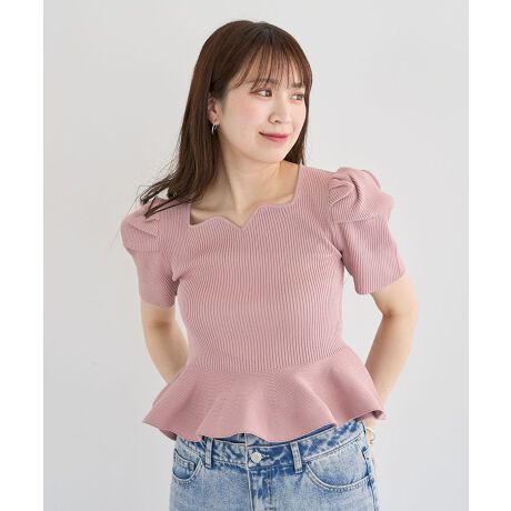 ハートネックがフェミニンなニットプルオーバー。ふんわり広がるペプラムシルエットに立体的なギャザースリーブを合わせ、上品で華やかなデザインに仕上げました。伸縮性に優れた素材で仕立て、快適な着心地も魅力的。デニムやワイドボトムなどカジュアルなアイテムと合わせたミックススタイリングもおすすめです。透け感[ややあり]
