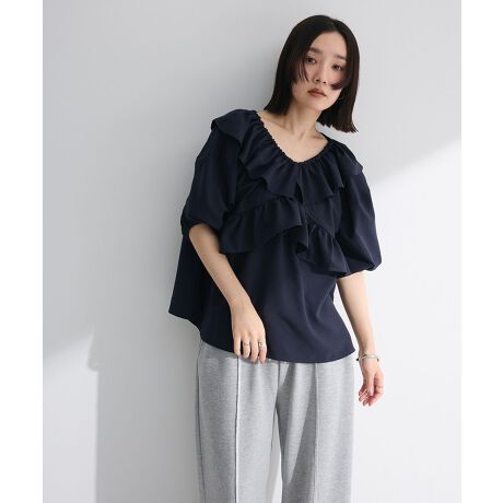 華やかなフリルデザインが目を惹くデザインブラウス。滑らかなポリエステル素材を使用することでスタイリングを上品に印象付けます。ヘルシーなオフショルダーとしても楽しめる2WAY仕様なのも魅力的。シンプルなワンカラーで派手になりすぎず、幅広いシーンで活躍してくれるおすすめのアイテムです。透け感[なし]