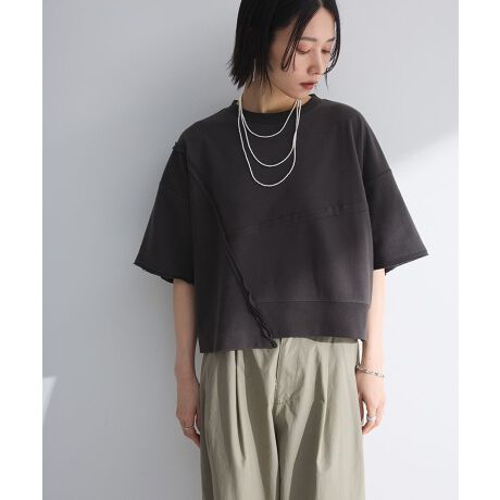 薄手の裏毛素材で仕立てたプルオーバー。前後の切り替えアクセントに切りっぱなしの袖口、アシンメトリーな裾、部分使いのリブなど細部にまでこだわりの詰まったデザインに仕上げました。ゆとりのあるサイズ感でリラクシーな着心地も魅力的。シンプルに合わせるだけでこなれたスタイリングが完成するおすすめのアイテムです。透け感[ややあり]