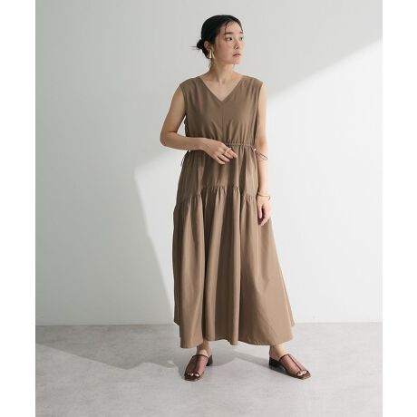 ややハリのある素材で仕立てたワンピース。ティアード切り替えのふんわりと広がるシルエットで品が良く、一枚で雰囲気のあるスタイリングが完成します。ウエストのドロストコードを調整して、お好みのフィット感に変えられるのも嬉しいポイント。Tシャツを合わせカジュアルダウンさせた着こなしもおすすめです。透け感[ややあり]