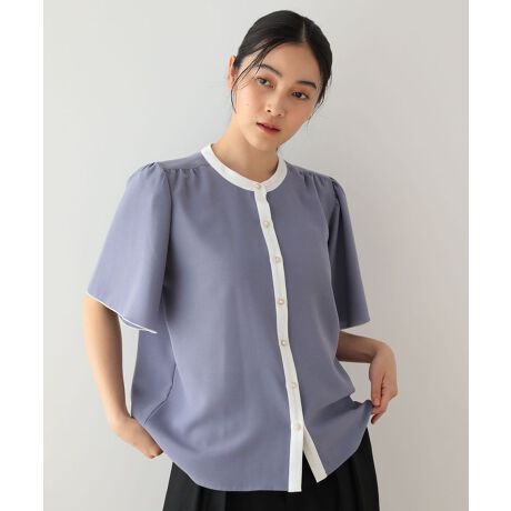 ネックラインや前立てのバイカラー配色がクラシカルな着こなしを叶えるブラウス。ふんわりと広がるフレアスリーブや、パール調ボタンがフェミニンな印象を与えます。ショルダー部分やバックヨークに施したギャザーのポイント使いがアクセントに。きれいめはもちろん、カジュアルアイテムと合わせたミックススタイルもおすすめです。透け感[ややあり]