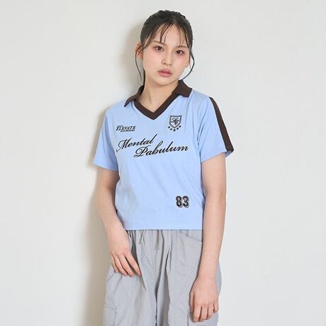 スキッパー衿が今っぽいデザインのゲームちびTシャツです。