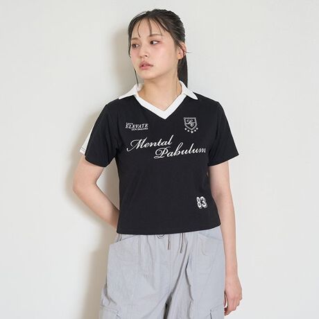 スキッパー衿が今っぽいデザインのゲームちびTシャツです。