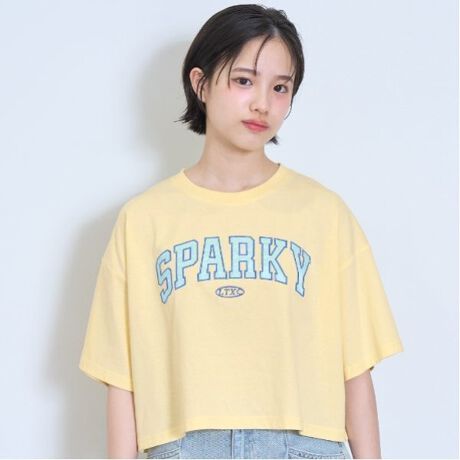 フロントロゴをアップリケで表現したクロップド丈Tシャツです。