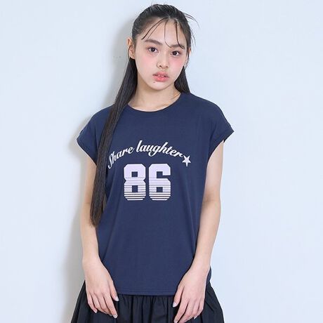 肩幅が広めなボックスシルエットで、フレンチスリーブのように着ていただけます。