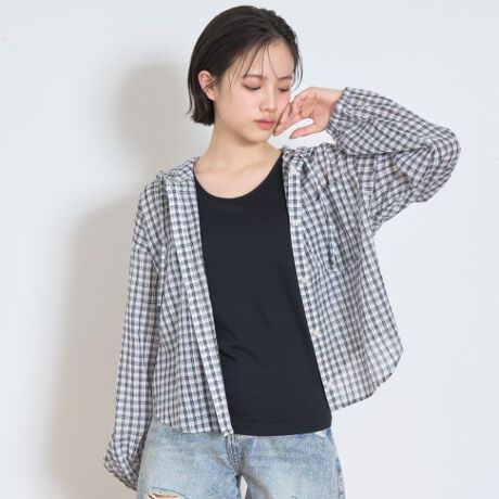 シアー感のある素材を使用したさわやかなチェックパーカです。