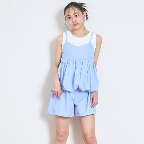 バルーンシルエットがトレンドっぽくて可愛いインナーつきのセットアップです。