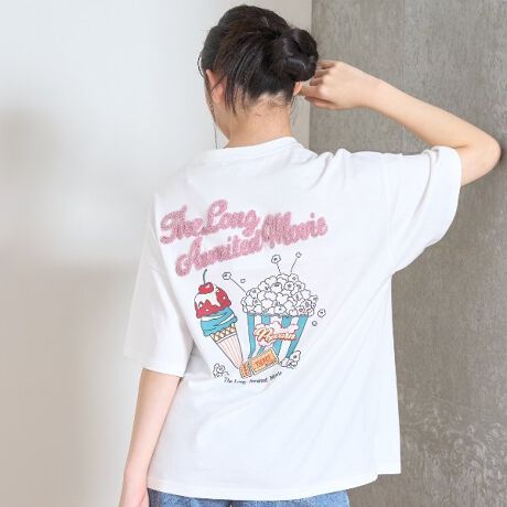 後ろにはポップコーンなどのユニークなプリントを大きくあしらいました。