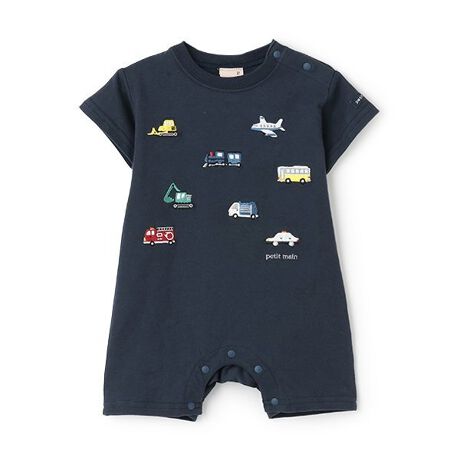 さまざまな働く車を刺しゅうで表現したカバーオールです。