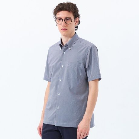 トラッドな印象のサッカー素材を使用した半袖シャツ