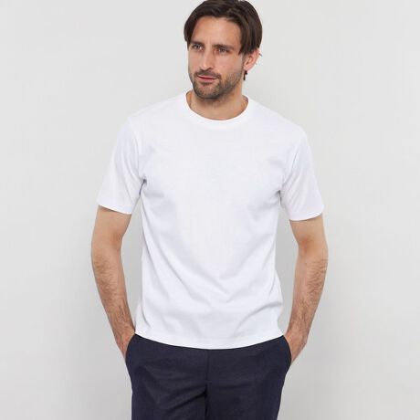 レギュラーフィッティングのオーセンティックなデザインのTシャツです。左胸にダンディマンの刺しゅうが入ります。1枚でご着用頂いても良いですが、ジャケットやアウターのインナーにも最適な商品です。脇下にデオドラントテープを施すことで、消臭効果も付与しています。