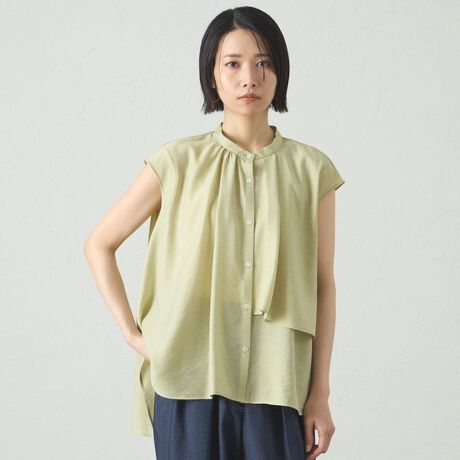 アシンメトリーデザインのフレンチスリーブブラウス。