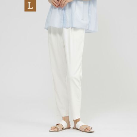 フロントに施したワンタックがシャープに見え、すとんと落ちるきれいなシルエットのテーパードパンツ。程よいゆとりが脚のラインを拾わず、美脚効果抜群のパンツです。ウエストはバックゴム仕様で履き心地はイージーな、夏のマストアイテムです。