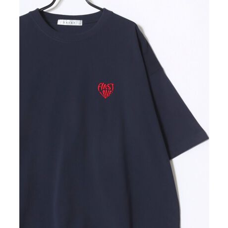 Lazar 別注 Heart Embroidery Tee/オーバーサイズ ハート柄 ロゴ ワンポイント刺繍 半袖Tシャツ/レディース メンズ