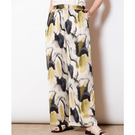[型番:599006-259P]夏らしい開放的なムードのプリントパンツ。シルエットはどんなトップスとも相性が良いテーパードで、汎用性の高い1本。===========================透け感: なし伸縮性: なし光沢感: ややあり裏地: あり(膝付近)素材について: シワになりにくく、マットなツヤのあるプリント地===========================