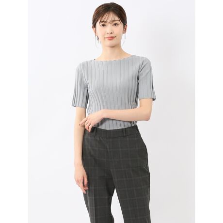 快適機能 ワイドリブ クルーネック 半袖ニット