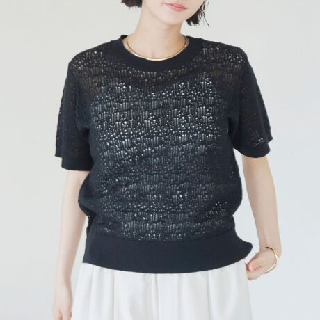 涼しげなレース編み素材を使用した、今季注目のサマーニットプルオーバー。