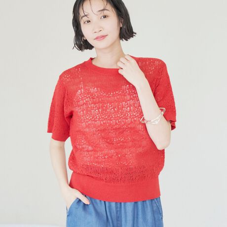 涼しげなレース編み素材を使用した、今季注目のサマーニットプルオーバー。