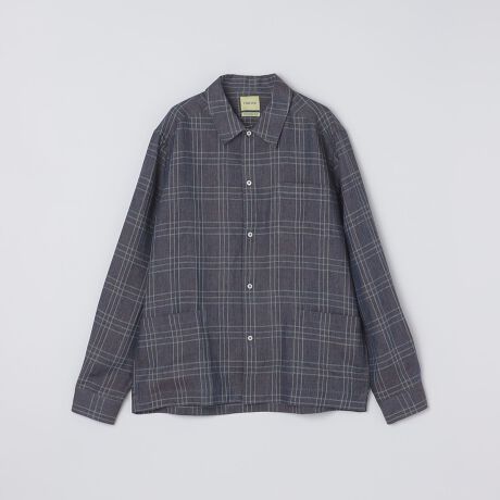 チェック柄と大き目のポケットが印象的な一着で、リネン特有のナチュラルさと軽やかさがあります。