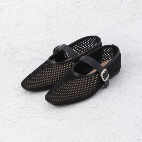 サンダル感覚で履けるメッシュパンプス。程良い抜け感を演出します。