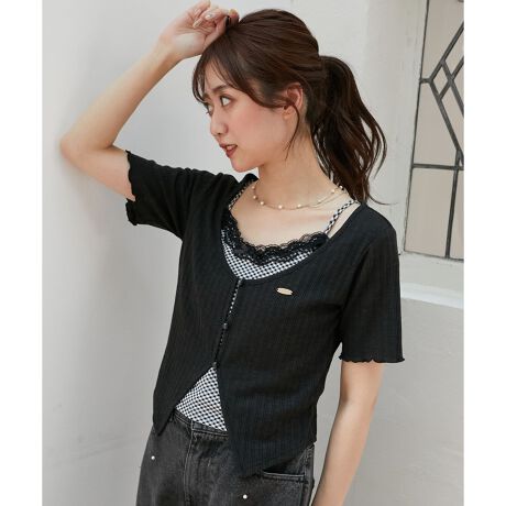 キャミレイヤード風のデザインとコンパクトなサイズ感がトレンドライクなカットトップス。