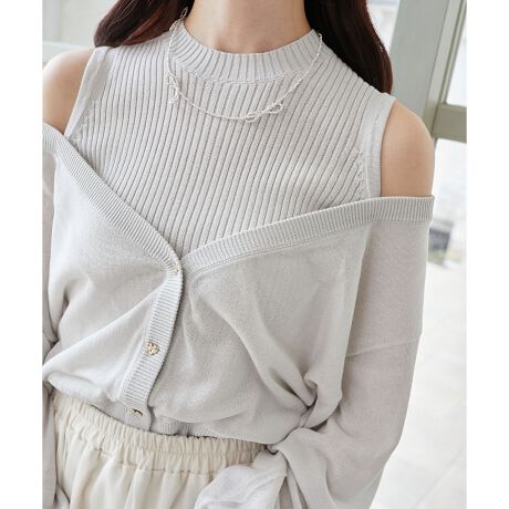 肩のボタンを外せば、カーディガン部分を羽織れる2way仕様!(カーディガン部分とインナー部分はドッキングされています。)