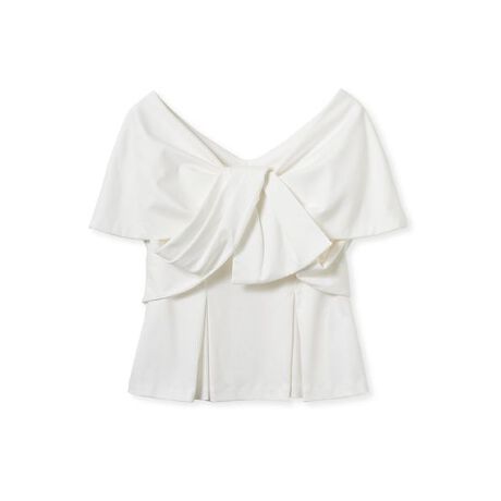 ポイントとなるリボンのモチーフを肩周りを覆う様に象り、キャッチーな印象のTシャツです。