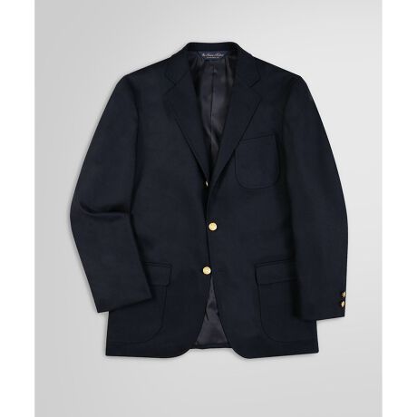 カシミヤブレンドの滑らかで艶のあるフランネル生地を使用しました。ブルックス ブラザーズを代表するボックス型の段返り3釦センターベントモデル、GF(ゴールデンフリース)マークを刻印したメタルボタンに、3パッチポケットを施したクラシックなデザインです。