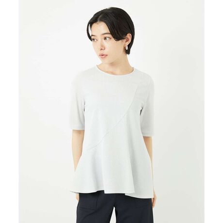 身頃の切り替えでストライプに動きをつけたカットソー。フレアデザインにすることで、ウエストがすっきりと見えるようにこだわったシルエットです。ピケ素材ならではの凹凸感から生まれる柔らかな風合いが魅力です 。肌離れも快適な素材で、暑い日でもさらっと心地よく着られるのも魅力です。