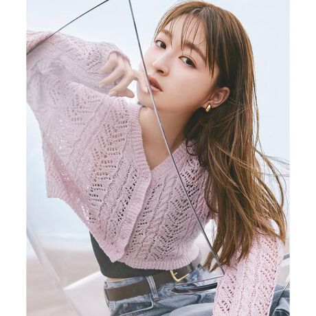 「上西星来さんコラボアイテム」キラキラとしたラメ糸とブークレー糸を組み合わせた華やかな柄編みニットカーディガンです。フロントにダイアモンドカットのクリア釦を使用し、きらっとしたディテールがポイント。透かし編みのデザインと合わせやすいショート丈なので、ワンピースを合わせてフェミニンな雰囲気で着たり、タンクトップのインナーにデニムでカジュアルダウンしたりと、様々な着こなしが楽しめます。<素材>キラキラと輝くラメ糸と清涼感のあるタッチのブークレー糸を組み合わせ、柄編みで編み立てました。<詳細>仕様・前ボタン裏地・なし透け感・ややあり / 光沢・あり / 伸縮性・あり生地の厚さ・普通※モデルの着用画像の場合、光の当たり具合により、実際の色味と異なって見えることがございます。色味は、商品単体の画像をご参照ください。
