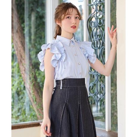 ストライプリボンフリルシャツブラウス