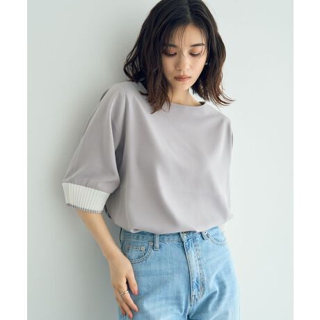 配色の袖口プリーツが目を惹くデザインブラウス。