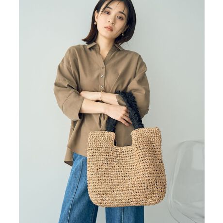 ギャザーを寄せたフリルハンドルがフェミニンなトートバッグ。