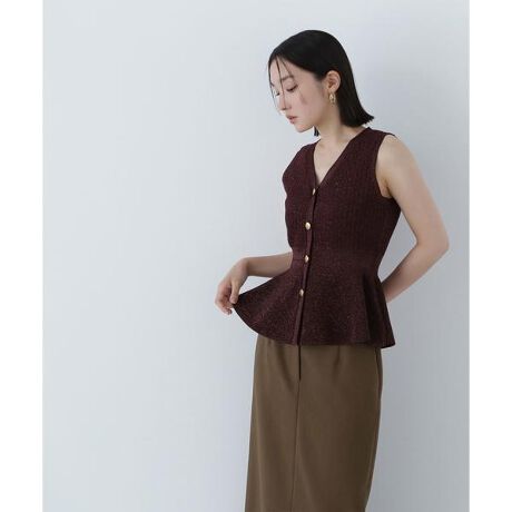 ジレとしてもプルオーバーとしても着られるペプラムニット。ツイードながらも、暑い時期に着やすいドライタッチな素材感を使用しています。ウエストリブにはさりげないアクセントをプラス。アームホールはすっきりとした総針編みなので横から見えにくく、襟は抜け感のあるVネックデザインです。ペプラムシルエットで女性らしく着ていただけます。<素材>ドライタッチな肉感のラメ糸混ツイード素材を使用しています。<詳細>仕様・前ボタン裏地・色によりあり透け感・なし / 光沢・なし / 伸縮性・あり生地の厚さ・普通※モデルの着用画像の場合、光の当たり具合により、実際の色味と異なって見えることがございます。色味は、商品単体の画像をご参照ください。