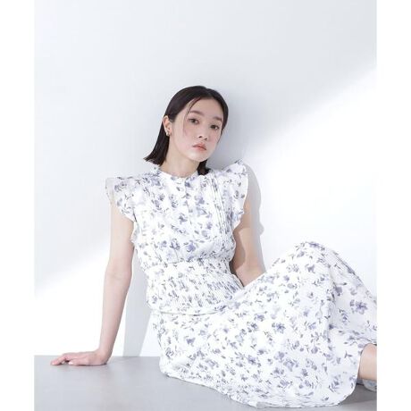 NBBオリジナル柄のフラワープリントを使用したワンピース。水彩画で描いたような柔らかい雰囲気の花柄でコーディネートが着映える1枚。袖はフリルスリーブで二の腕をカバーしながらフェミニンな印象に。ウエストはシャーリングゴム仕様でストレスフリーなはき心地です。スカート部分はティアード切り替えとプリーツ加工を入れているため、動くたびにふわっと揺れるシルエットです。<素材>シワになりにくい合繊ジョーゼット素材を使用しています。<詳細>仕様・前ボタン裏地・あり透け感・なし / 光沢・なし / 伸縮性・なし生地の厚さ・普通※モデルの着用画像の場合、光の当たり具合により、実際の色味と異なって見えることがございます。色味は、商品単体の画像をご参照ください。